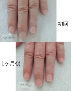 指先がしっとりと潤い、薄皮がなくなったことで艶まで出てきました。